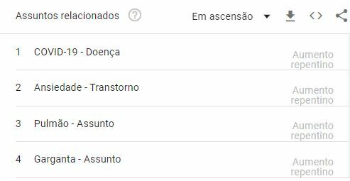 Uma análise da plataforma Google Trends, ferramenta do site de pesquisa que mostra quais as buscas mais realizadas em cada região, aponta que as pesquisas por “Falta de ar Covid, o que fazer?” estão em alta na última semana dentro do tema pandemia.